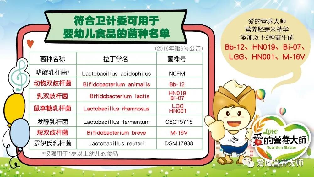 根據衛(wei)計委公(gong)告,截止到 2016 年,我國(guo)(guo)制(zhi)定(ding)《可(ke)用于嬰幼(you)兒食品的菌(jun)(jun)(jun)種名(ming)單》中有(you) 7 個菌(jun)(jun)(jun)種,包含 9 種菌(jun)(jun)(jun)株(zhu),都是(shi)國(guo)(guo)家經過安(an)全(quan)性評估測試(shi)所公(gong)告,推薦(jian)給(gei)寶(bao)寶(bao)安(an)全(quan)又適合的菌(jun)(jun)(jun)種。