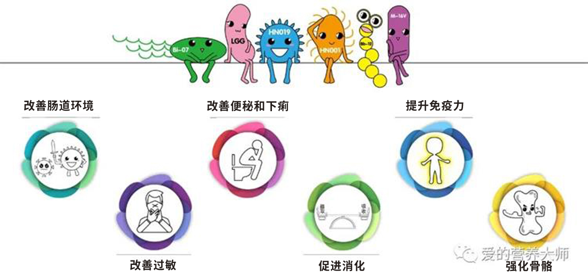 促進體內(nei)有益菌(jun)(乳(ru)雙(shuang)歧桿菌(jun)(HN019)和嗜酸乳(ru)桿菌(jun)生長)的生長