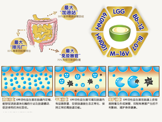 腸(chang)道除了掌(zhang)管(guan)營(ying)養的(de)(de)(de)消(xiao)化吸收(shou)外,也是(shi)我(wo)們身(shen)體(ti)最大(da)的(de)(de)(de)免(mian)(mian)疫(yi)(yi)器官,身(shen)體(ti)70%的(de)(de)(de)免(mian)(mian)疫(yi)(yi)力(li)是(shi)由腸(chang)道內的(de)(de)(de)好菌(jun)刺激(ji)免(mian)(mian)疫(yi)(yi)細胞所(suo)生成(cheng)的(de)(de)(de),所(suo)以定居在腸(chang)道中(zhong)的(de)(de)(de)好、壞(huai)菌(jun),都具有(you)左右免(mian)(mian)疫(yi)(yi)系統的(de)(de)(de)能力(li)。